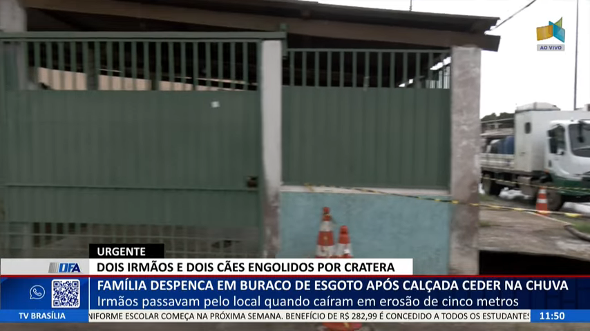 DF ALERTA – Família despenca em buraco de esgoto após calçada ceder na chuva
