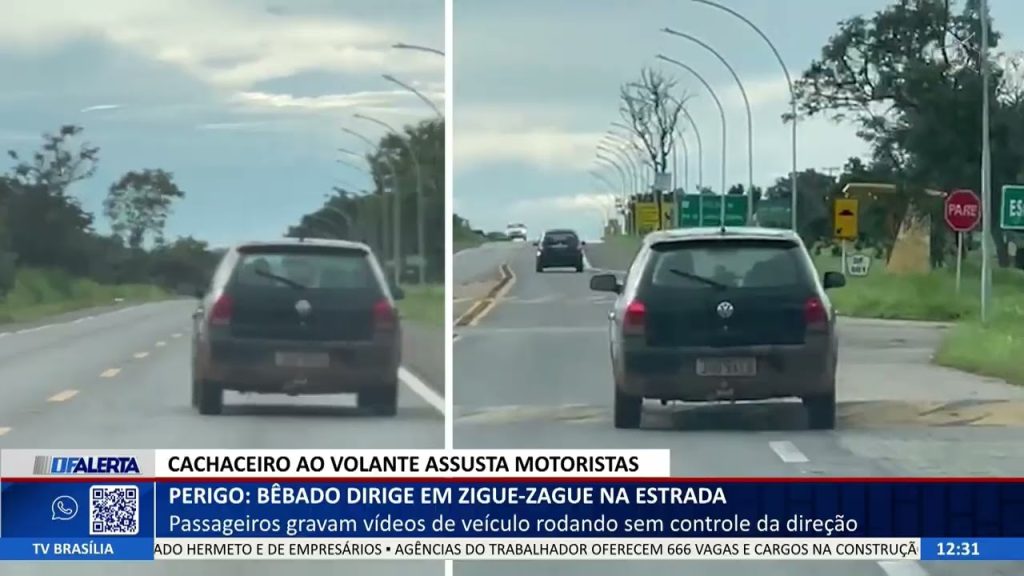 DF ALERTA – Perigo: bêbado dirige em zigue-zague na estrada