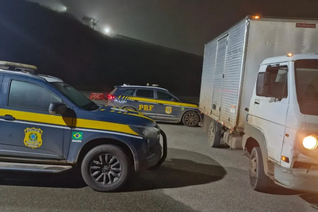 Pai e filho, de 58 e 27 anos respectivamente, foram presos pela Polícia Rodoviária Federal a bordo de um caminhão Volkswagen com registro de furto. A ação ocorreu na noite de terça feira (10), durante patrulhamento na BR-262, na altura do km 355, em Betim, no estado de Minas Gerais.