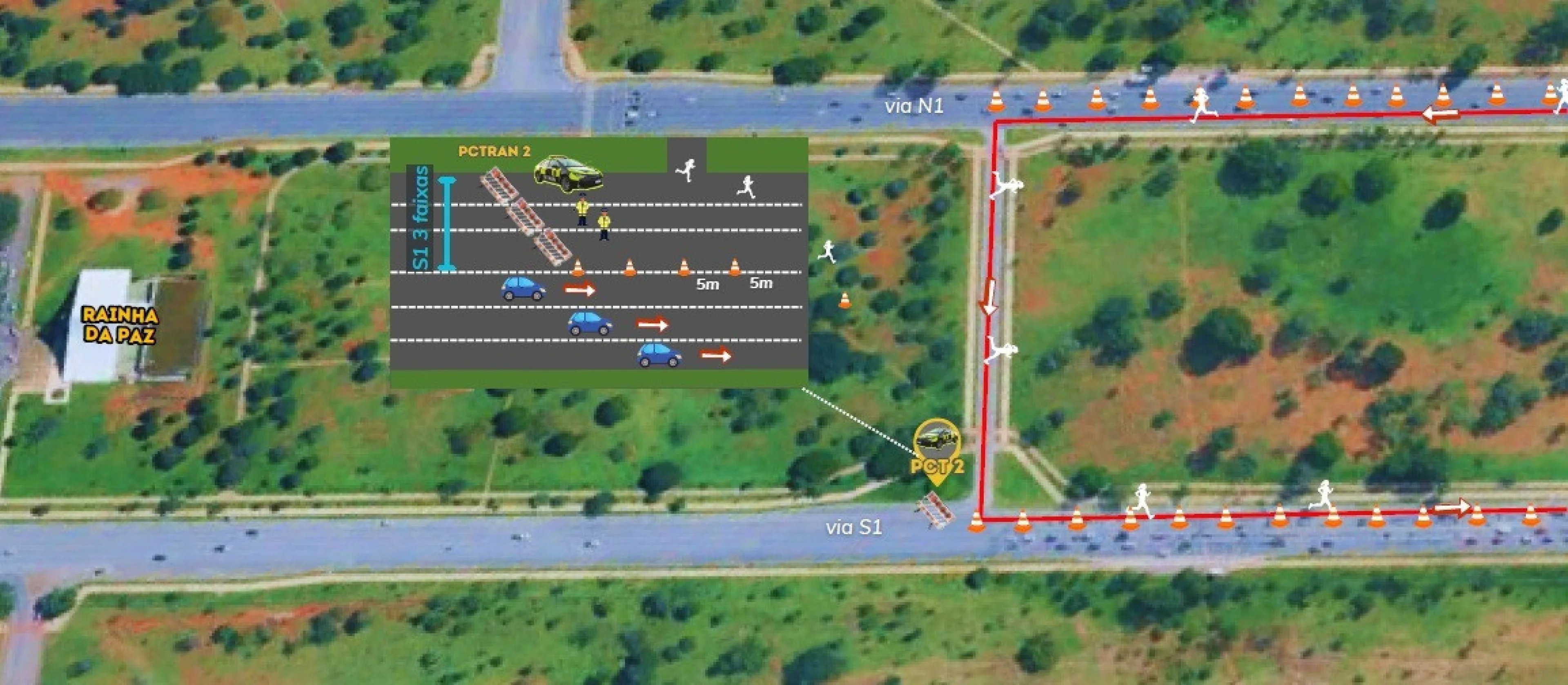 No decorrer do evento, três das seis faixas das vias S1 e N1 serão interditadas. Essa medida é uma estratégia para assegurar o espaço necessário para a corrida, minimizando ao máximo o impacto no trânsito local. As interdições se estendem do Centro de Convenções Ulysses Guimarães até a altura da Praça do Cruzeiro, uma área bastante movimentada, principalmente em finais de semana.