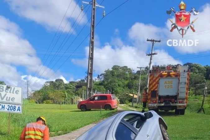 Ao chegarem, os bombeiros verificaram que tanto a motorista quanto o passageiro do veículo já estavam fora do automóvel. Ambos estavam conscientes, orientados e, felizmente, não apresentavam ferimentos aparentes, o que dispensou a necessidade de atendimento médico imediato. A rápida atuação do CBMDF garantiu que procedimentos de segurança fossem adotados imediatamente, prevenindo possíveis riscos, como a estabilização do carro e medidas para evitar incêndios.